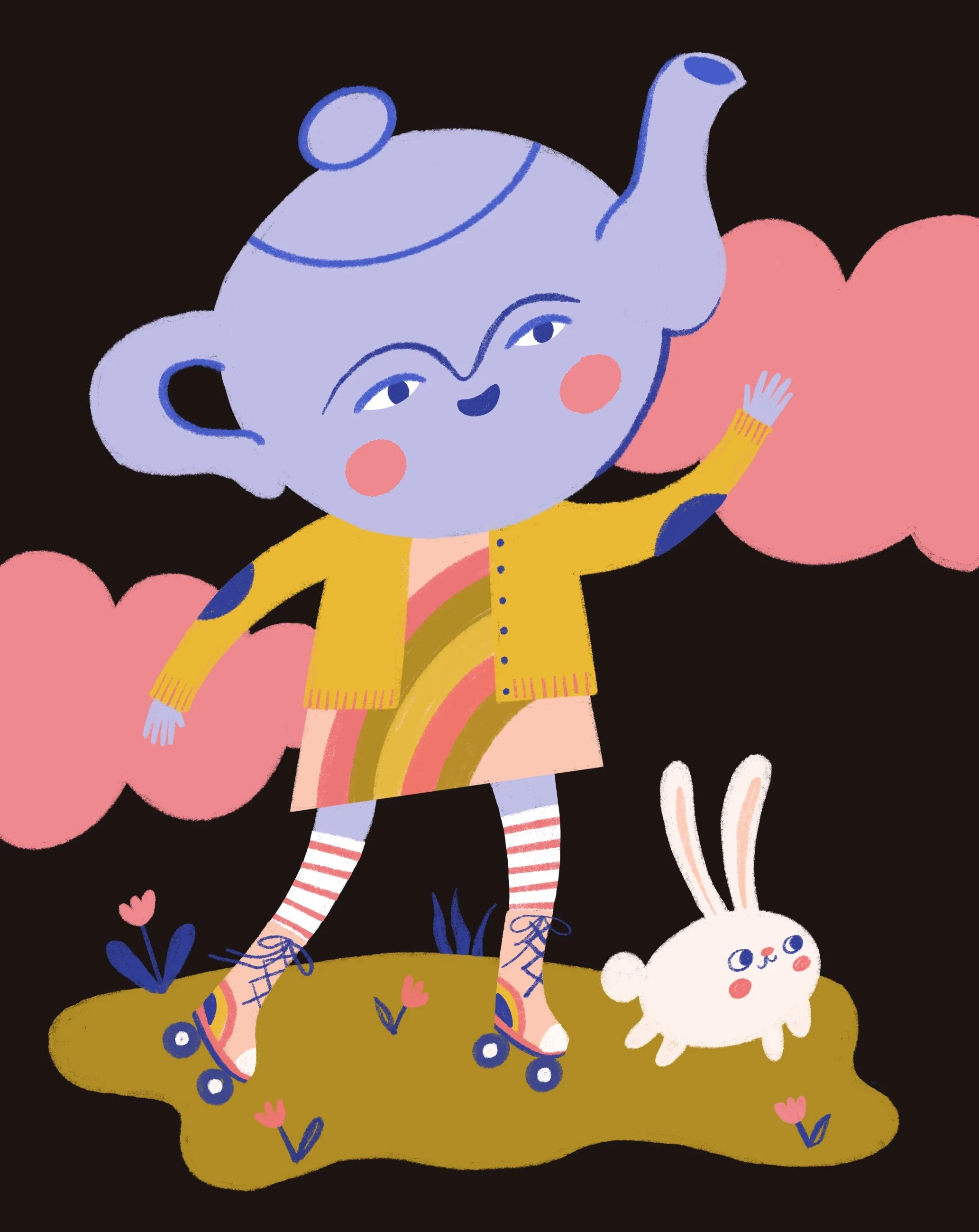 Tea Pot Lady is Rollin’, living her best life on a sunny day! This drawing is beautifully printed on acid-free, linen textured, heavy paper. It is signed, numbered, matted, and ready to frame. Available in two sizes. Once the edition sells out, it will be permanently retired.